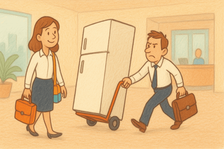 Maintenant, imaginez que votre collègue débarque avec un frigo familial de 200 litres sur un diable pour transporter son propre déjeuner. Vous penseriez qu’il a pété un plomb, non ?